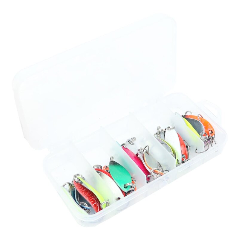 Forellenspoonset bestehend aus 25 kleinen Spoons und einer praktischen Box. Die große Farbauswahl dieses Sets macht es möglich immer die passende Farbe dabei zu haben. Neben einfarbigen Spoons enthält das Sortiment Spoons mit zwei Farben, UV aktive Spoons und ebenso Modelle mit Glitteranteil. Die kleinen Spoons können vorwiegend zum Angeln auf Salmoniden wie Regenbogenforelle, Bachforelle oder Saibling eingesetzt werden.