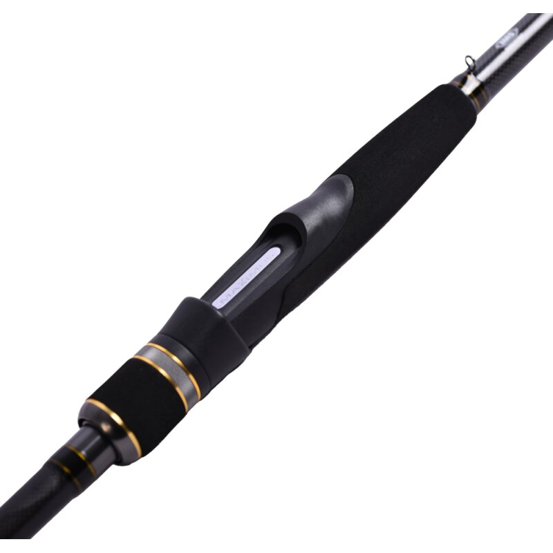 Die steife Mittelpartie sorgt für ein kraftvolles und sicheres Anjiggen sowie zuverlässige Anhiebe, selbst bei aggressiven Köderführungen. Gleichzeitig garantiert die elastische Spitze (SST) eine feine Rückmeldung über den gesamten Wurf- und Köderbereich – ideal für sensible Bisse in tiefem Wasser oder bei schwierigen Bedingungen.