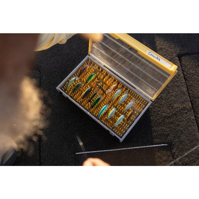 Die Box ist speziell für kleine Crankbaits konzipiert und verfügt über flexible Silikon Stäbe, die die Köder schützen. Sie ist zuverlässig und wasserdicht dank des Dri-Loc O-Rings, der die Wasserdichtigkeit gewährleistet.