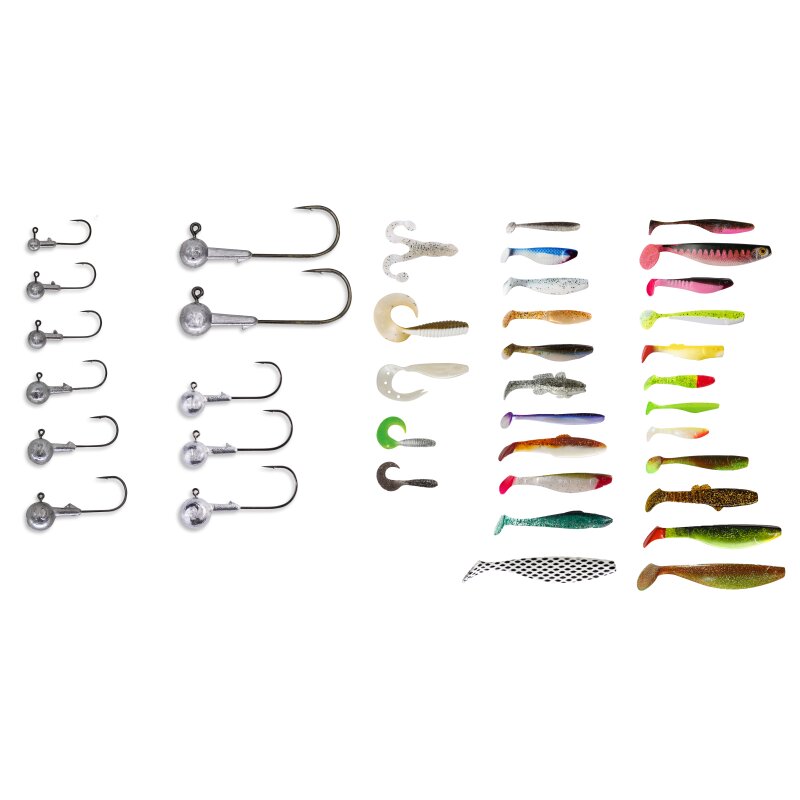 Relax Gummifische Sonderbox mit Jigköpfen und Zubehör 40- tlg