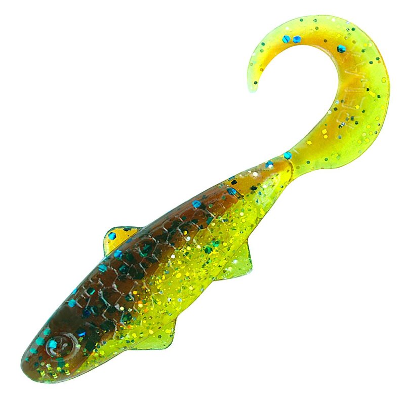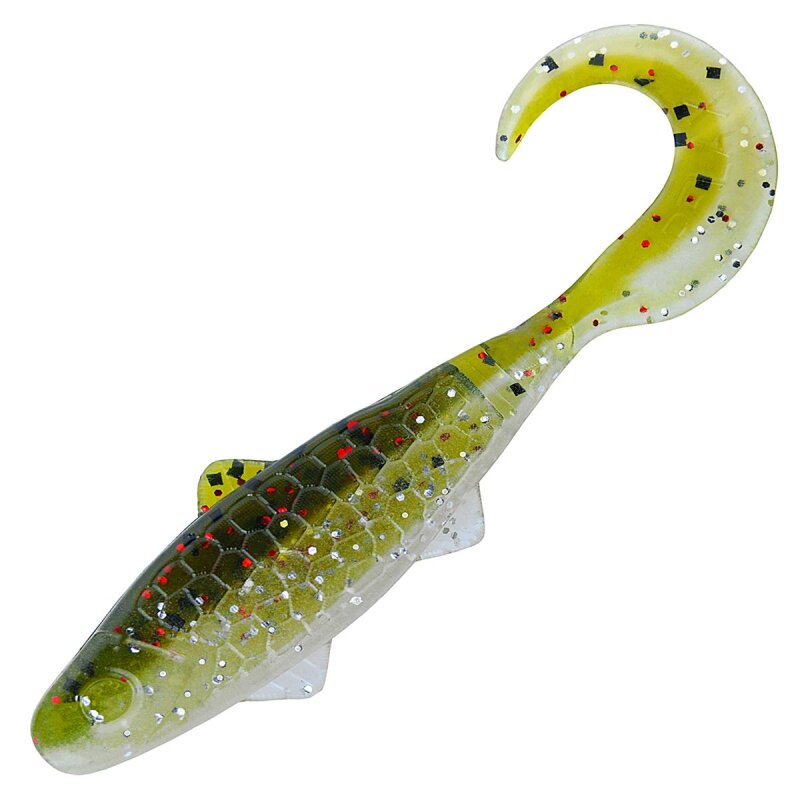Der Super Banjo 2" ist ein hybridartiger Gummiköder und im vorderen Teil ein Shad im hinteren Teil mit einem Twisterschwanz ausgestattet. Er eignet sich als Gummifisch für Barsch, Zander, Forelle, Döbel und andere Räuber.