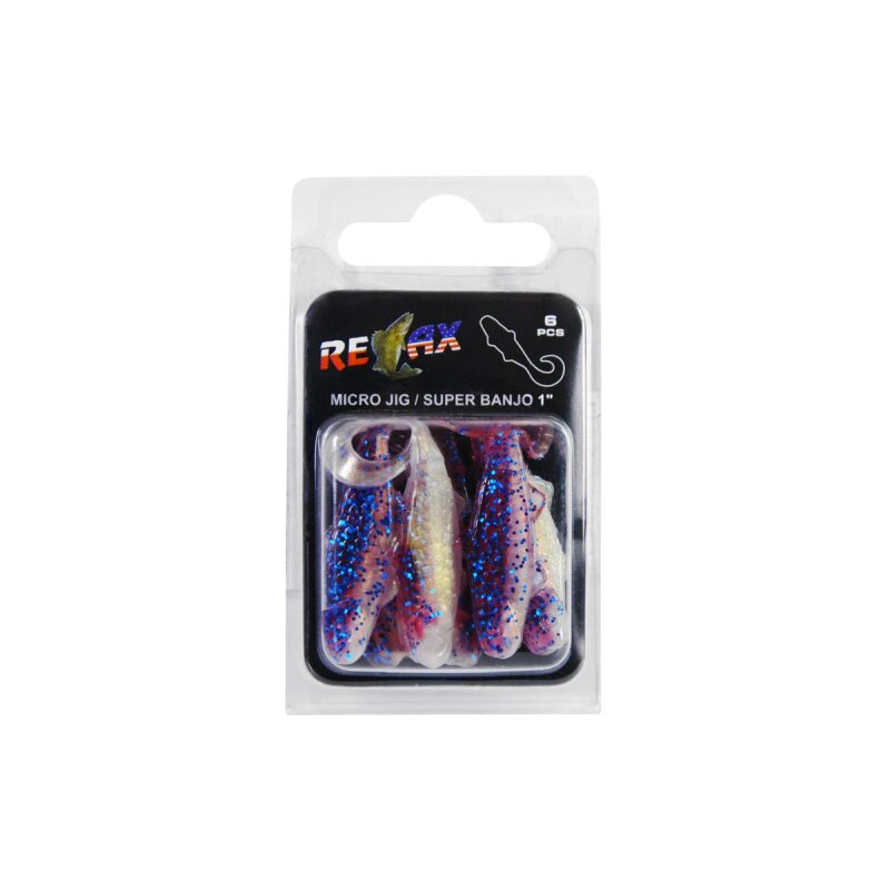 Der Relax Banjo ist eine sehr authentische Nachahmung eines echten Fischchens. Der sensitive Twisterschwanz sendet unter Wasser dezente aber wahrnehmbare Druckwellen aus. In der Größe 1" ist der Super Banjo für verschiedene Arten des Spinnfischens einzusetzen. Sowohl am Dropshot Rig als auch als klassischer Jig lässt sich der Super Banjo hervorragend auf Barsche, Döbel und Forellen einsetzen.