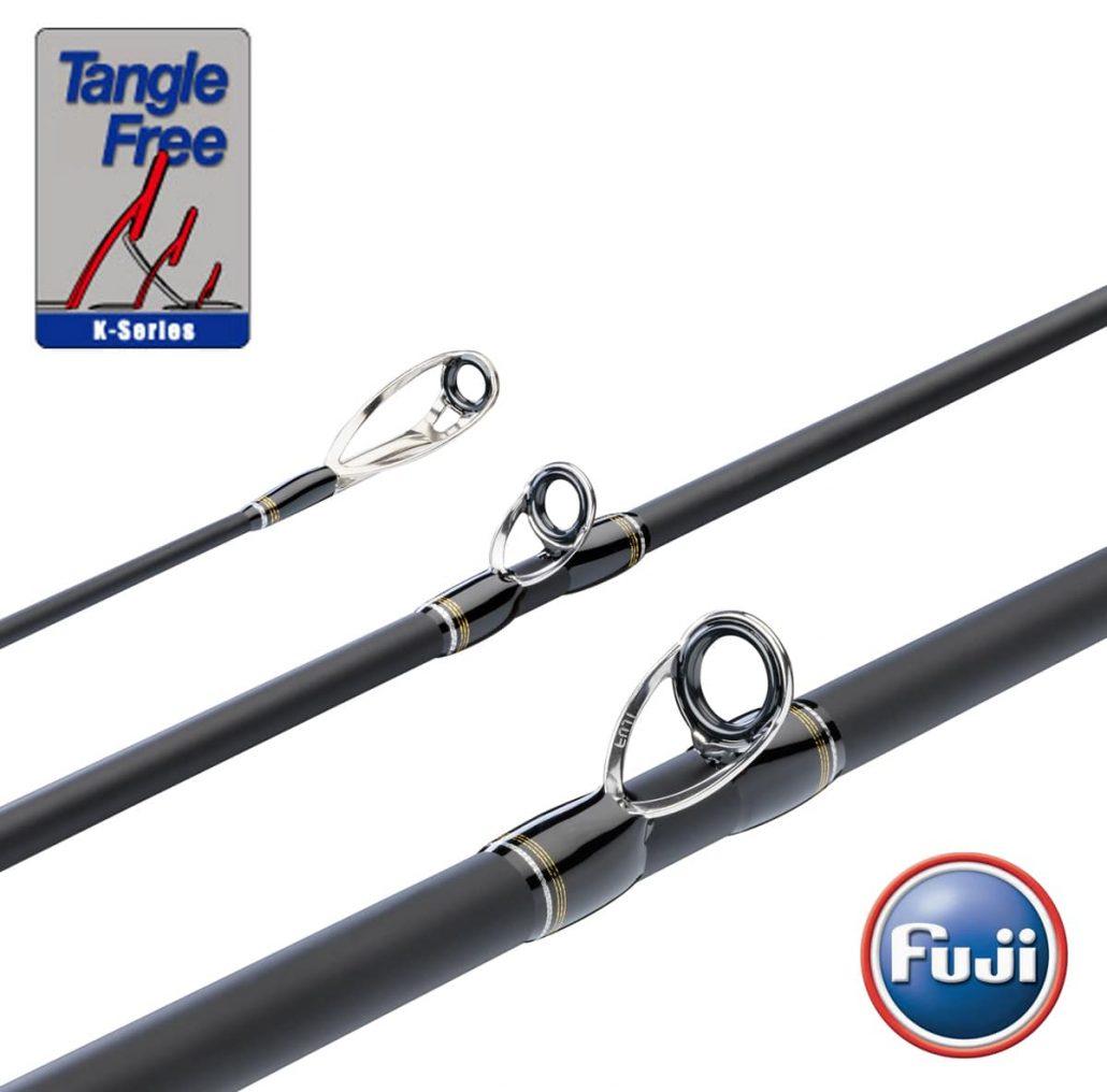 - FUJI-Ringe: Qualitätskomponenten für perfekte Schnurführung, minimale Reibung und maximale Wurfweite.