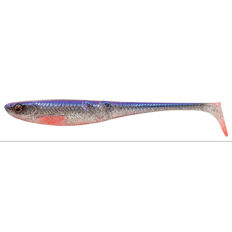 Die nach vorne gerichtete Sonartechnologie boomt und hat Savage Gear herausgefordert, den perfekten Weichköder für das Angeln auf Zander und Hecht zu entwickeln. Das schaufelförmige Paddel aus superweichem PVC-Material bewegt sich mit der geringstmöglichen Geschwindigkeit und erzeugt eine fantastische rollende und doppelt schlagende Aktion. In Kombination mit dem lauten Glasrasseln und den extrem lebensechten Farben ist dieser Weichköder für Raubfische absolut unwiderstehlich. Die speziellen seitlich abgewinkelten Kerben haben zwei Funktionen: 1. Sie erzeugen zusätzliche Vibrationen im Wasser, aber am wichtigsten ist: 2. Der Weichköder kollabiert beim Biss. Aufgrund des Winkels der Kerben klappt der Schwanz immer nach unten, sodass er sich nie in den Drillingen verhakt und Ihre Fangquote maximiert wird.